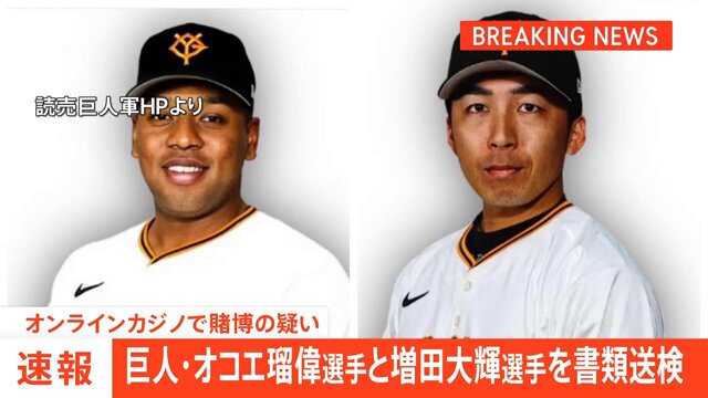 @mP46Pjz8wZ32545巨人のオコエ瑠偉選手・増田大輝選手を書類送検 オンラインカジノ賭博の疑い プロ野球関係者で3球団目(2025年5月8日掲載)|日テレNEWS NNN news.ntv.co.jp/category/socie…