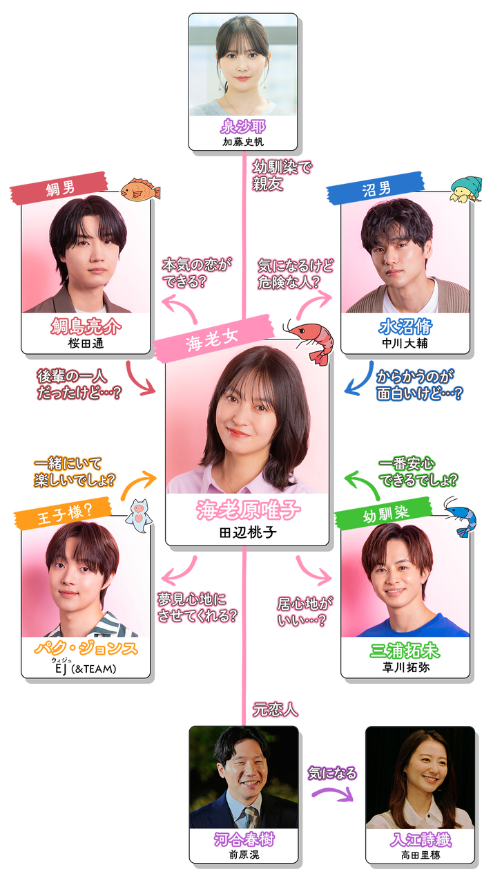 | 田辺桃子主演『海老だって鯛が釣りたい』放送決定 共演に中川大輔×草川拓弥×EJ×桜田通 田辺桃子が主演を務め、中川大輔、超特急の草川拓弥、&TEAMのEJ(ウィジュ)、桜田通が共演する連続ドラマ『海老だって鯛が釣りたい』が、7月2日よ… (出典:リアルサウンド) |