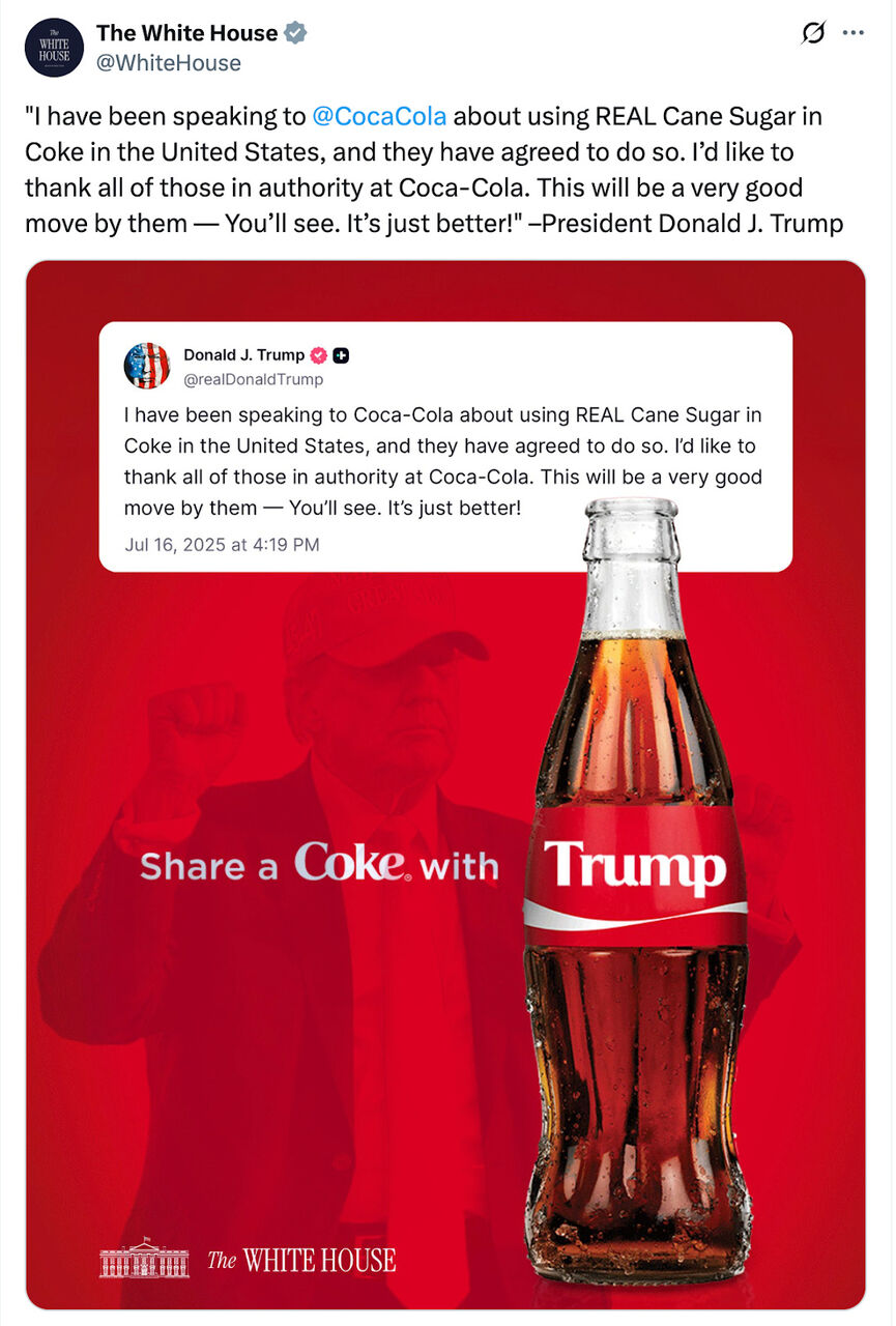 @yume_millionトランプ大統領、コカ・コーラ社と天然のサトウキビ糖使用で合意🤝