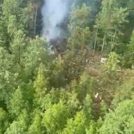 @P10231023] 2025年7月24日、ロシアのアムール州ティンダ近郊で発生したアンガラ航空のAn-24旅客機の墜落現場から煙が上がる様子。この静止画像はビデオから撮影されたものである。 〇着陸進入中に密林に飛行機が墜落 〇子供を含む40人以上の乗客を乗せていた 〇ロシアが捜査を開始、プーチン大統領に通知